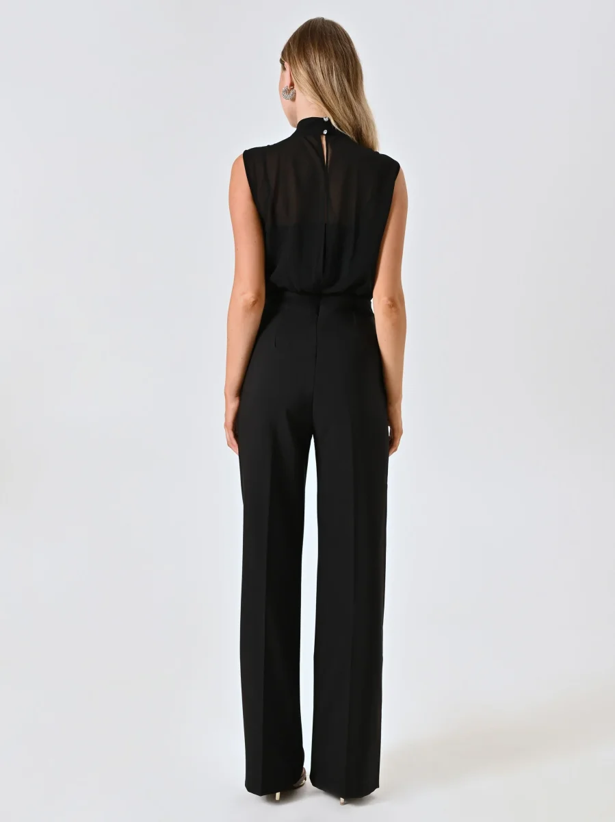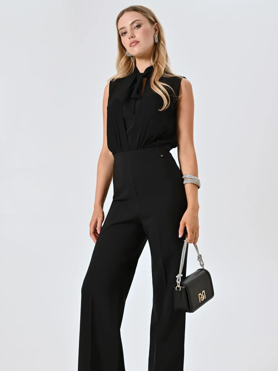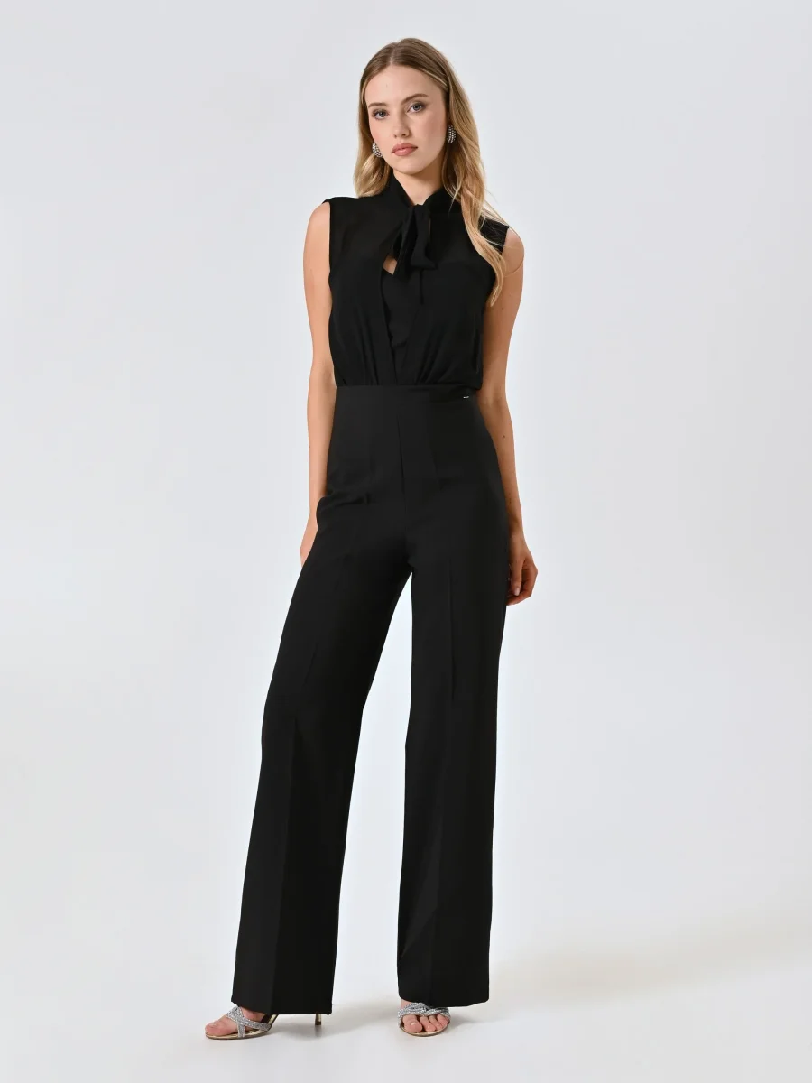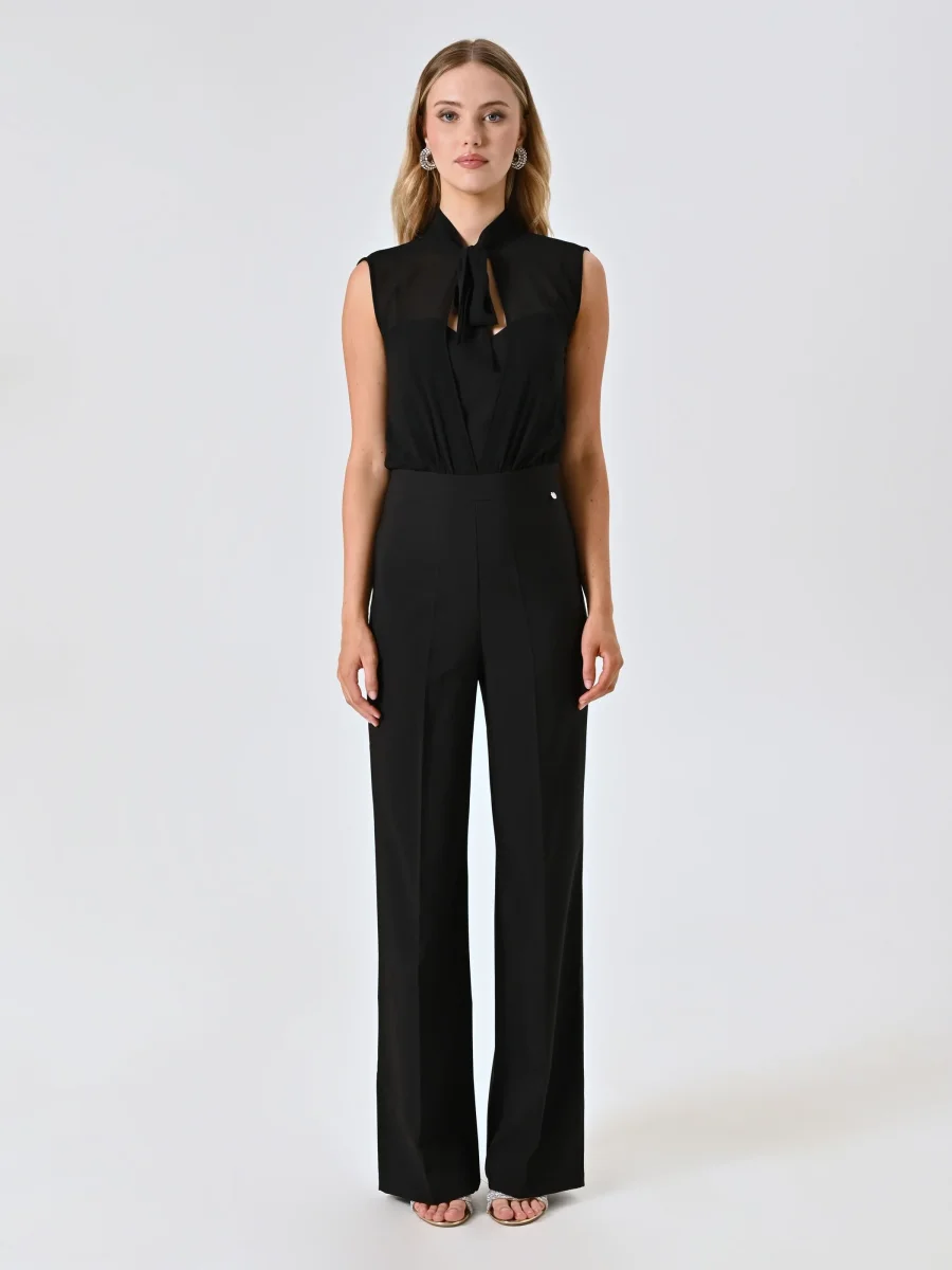 La Tuta profilo Bustier e Fiocco è un capo elegante e femminile, pensato per valorizzare con stile le occasioni speciali. Realizzata con un raffinato corpino in georgette e pantaloni in tessuto tecnico, la Tuta profilo Bustier e Fiocco presenta un bustier con spalline sottili, una blusa in georgette con fiocco decorativo e pantaloni con piega stirata che donano un’allure sofisticata. La chiusura con zip e bottoncino assicura una vestibilità precisa e discreta.