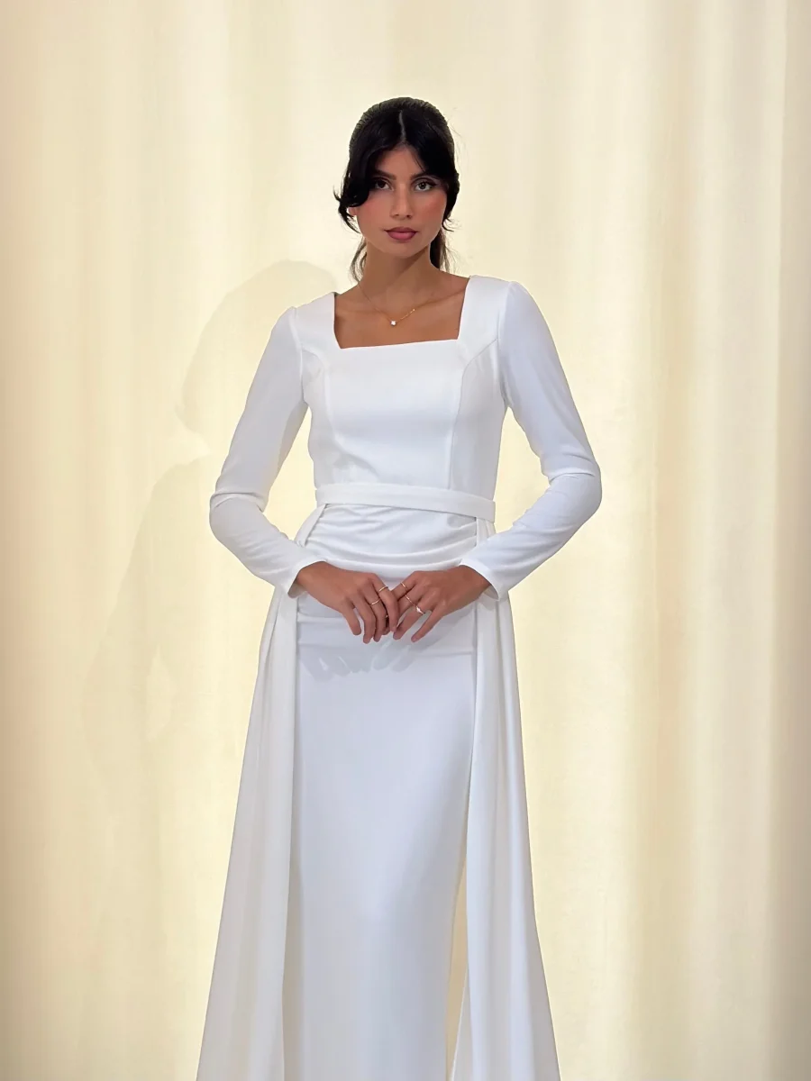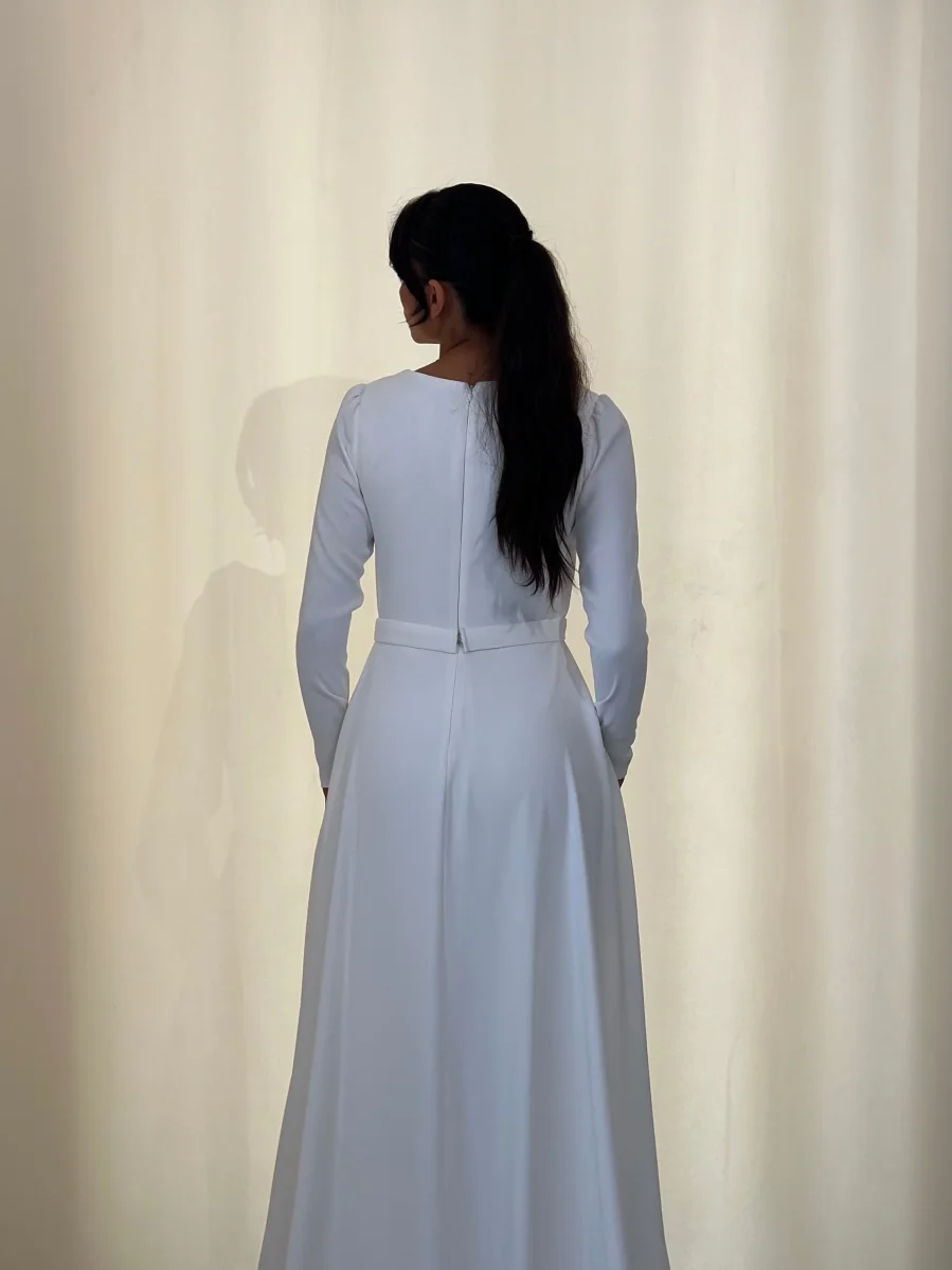Longue robe blanc, sans fente.